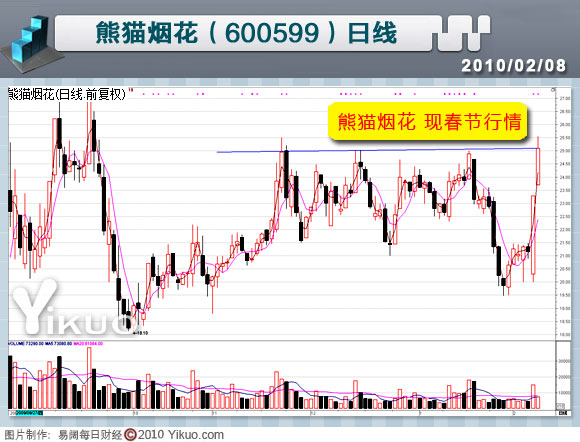 熊貓煙花春節(jié)行情 25元處有阻力 時間:2010年2月8日 |