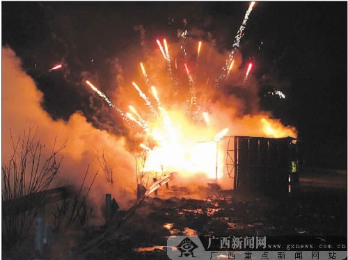 | 簡文:車翻后煙花爆竹起火爆炸。蔣義發(fā)攝