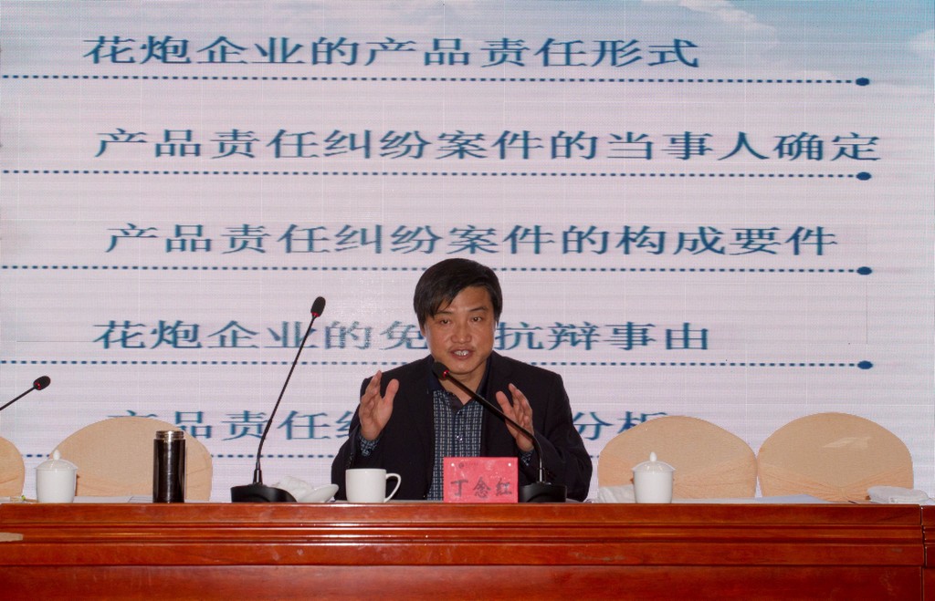 丁念紅庭長講解“花炮企業(yè)安全生產(chǎn)與產(chǎn)品質(zhì)量法律責任”