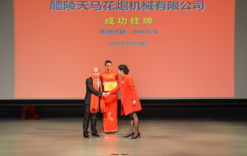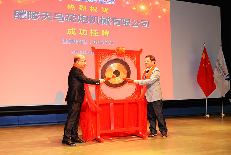 12月18號上午,醴陵天馬花炮機械有限公司經(jīng)過2個多月的努力,在醴陵市市政府和中國花炮協(xié)會的相關(guān)領(lǐng)導(dǎo)見證下,正式在深圳證劵交易所成功掛牌上市新四版,標志花炮機械企業(yè)從此開始走向金融市場。