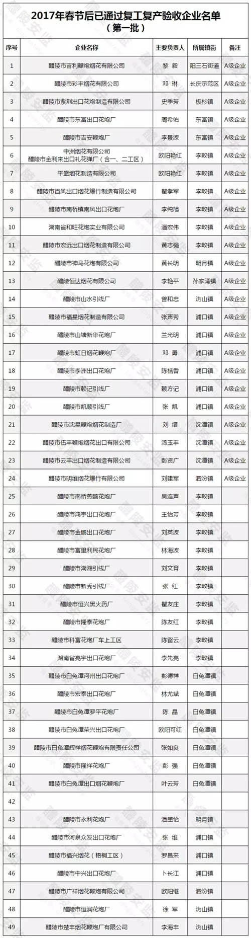 截至今天下午五點,我市已經(jīng)有48家企業(yè)通過復產(chǎn)驗收審批了,名單如下↓↓↓