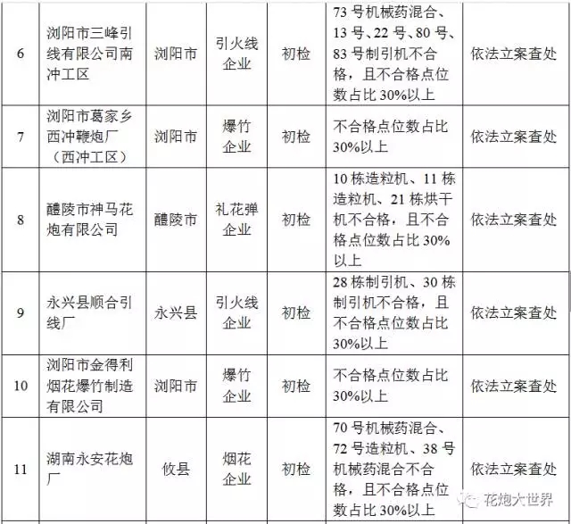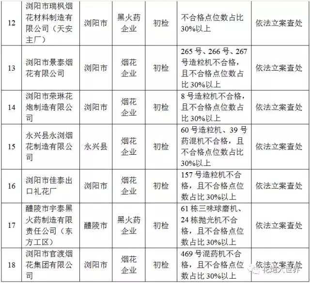 此次抽檢統(tǒng)計,有18家企業(yè)因重點涉藥機械設(shè)備接地不合格、被檢點位不合格率達30%以上或靜電設(shè)施、設(shè)備嚴(yán)重缺失等,被認(rèn)定導(dǎo)靜電設(shè)施安全抽檢不合格單位(具體名單見附件2)。其中,瀏陽市恒達煙花材料制造有限公司、長沙萬奇煙花制造有限公司、瀏陽市關(guān)口豪東花炮廠等3家企業(yè)2016年度被國家安全監(jiān)管總局、省安監(jiān)局抽檢不合格,此次復(fù)檢仍不合格。