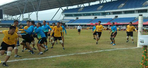 观众席座无虚席,就连场外也站满了观众。自8月10日抢花炮在东胜区全民健身活..