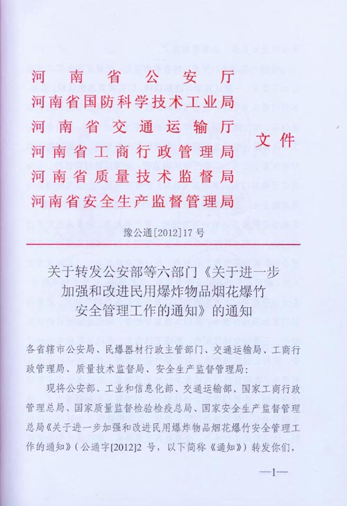 遼寧省外煙花爆竹供貨企業(yè)備案的補充通知 時間:2013年4月1日 |