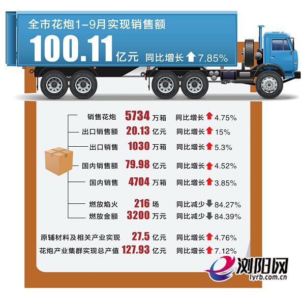 瀏陽(yáng)日?qǐng)?bào)訊(記者周晴)我市花炮行業(yè)傳來(lái)捷報(bào)。昨日,記者從市花炮局獲悉,19月全市花炮產(chǎn)業(yè)共實(shí)現(xiàn)銷(xiāo)售額100.11億元,同比增長(zhǎng)7.85%;花炮產(chǎn)業(yè)集群實(shí)現(xiàn)總產(chǎn)值127.93億元,同比增長(zhǎng)7.12%。
