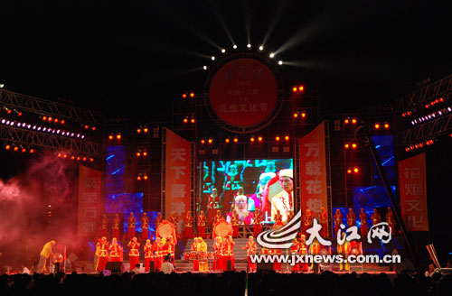 9月16日晚,由萬(wàn)載縣委、縣政府主辦的 彩天情—2008中國(guó)·萬(wàn)載首屆花炮文化節(jié)開幕式暨迎賓聯(lián)歡晚會(huì)在萬(wàn)載縣城龍珠廣場(chǎng)隆重舉行。(本文圖片由大江網(wǎng)記者姚海南 攝)
