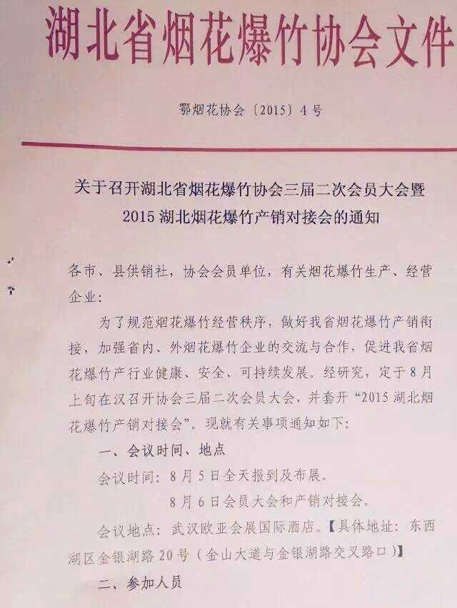 上一篇 ↑[浙江:7月14-15日舉行煙花爆竹洽談訂貨會] 下一篇 ↓[花炮機械暨原材料展三天成交金額達(dá)6800萬]
