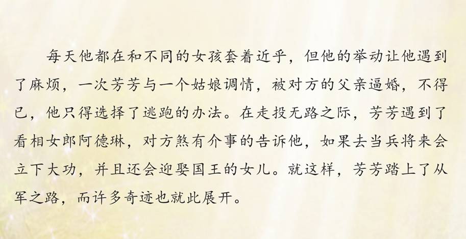 本次焰火晚會講述的是法國路易十五時(shí)期,芳芳(一個(gè)很招女人喜歡的青年)歷經(jīng)波折,最終迎娶路易十五的女兒的浪漫愛情故事。燃放時(shí)間為20分鐘。