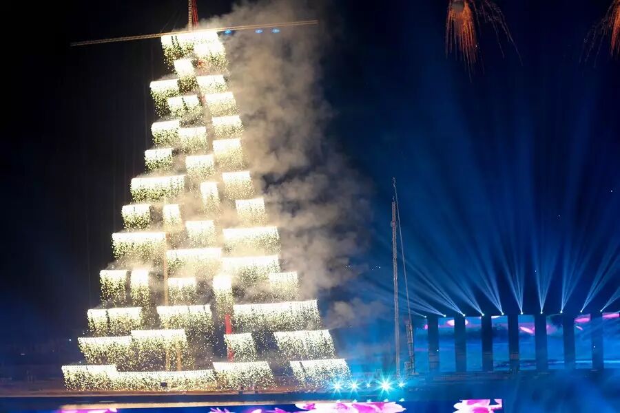 網(wǎng)幕動態(tài)焰火《一帶一路》,受到中外游客關(guān)注,3000平方米的網(wǎng)幕煙花再現(xiàn)“絲綢之路”的繁華,紅色絲雨、紫色蒲公英、金色麥浪……跳動的焰火輝映悅動的音符,傳承千年的瀏陽花炮在夜空為世界寫下最浪漫、最絢麗的情歌。