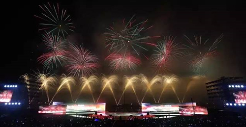 以“PLENUS”為主題的焰火秀分為四個(gè)篇章《節(jié)奏之舞》《風(fēng)情之舞》《狂野之舞》《激情之舞》四個(gè)篇章。