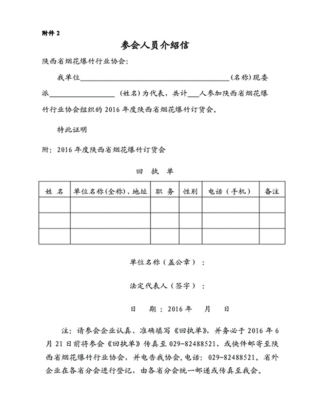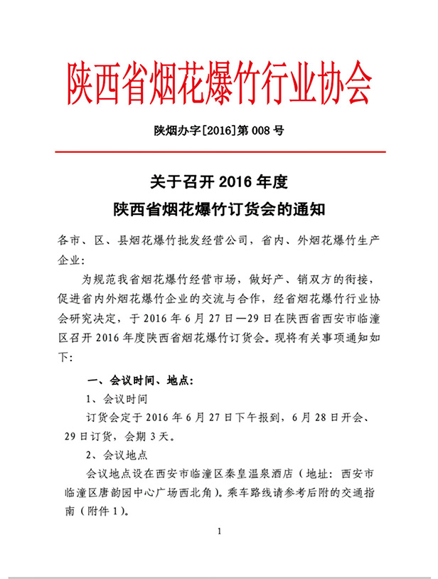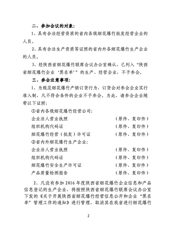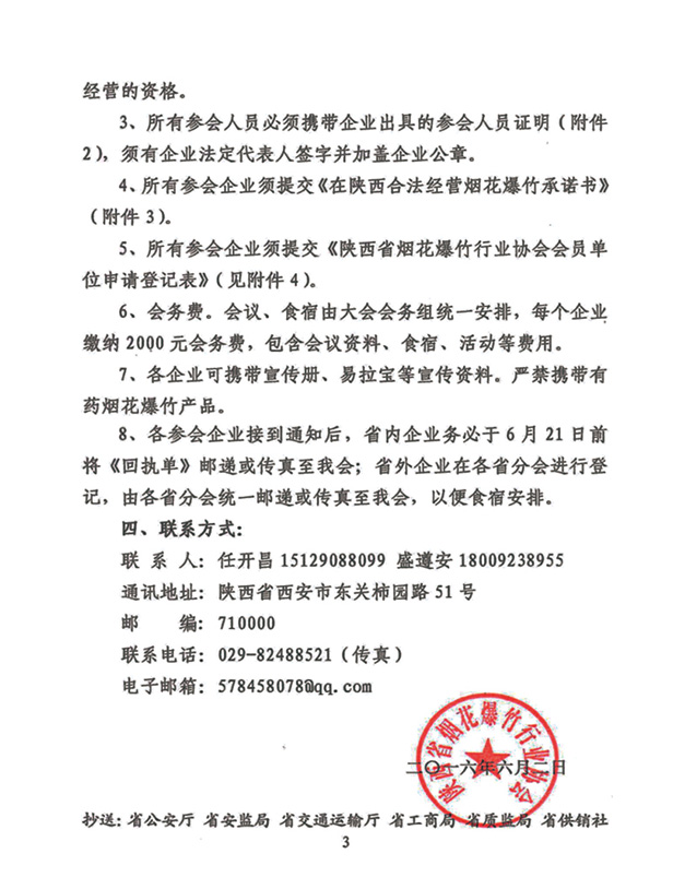 上一篇 ↑[關(guān)于召開山東省2017年度煙花爆竹交易會的預(yù)備通知] 下一篇 ↓[關(guān)于召開2016年度黑龍江省煙花爆竹行業(yè)工作會 暨省外煙花爆竹生產(chǎn)企業(yè)安全資質(zhì)備案會議的通知]