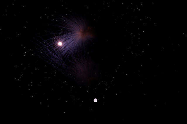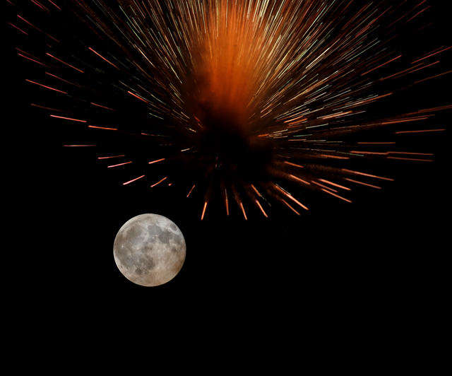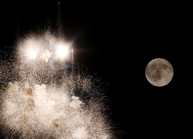 8月18日,在馬耳他基爾科普,夜空中的一輪圓月和為慶祝圣萊昂納德節(jié)燃放的煙花交相輝映。新華社/路透