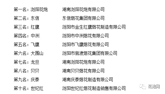 第一名:湖南瀏陽(yáng)花炮有限公司 (瀏陽(yáng)花炮)