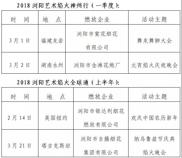 關(guān)于2018瀏陽藝術(shù)焰火神州行(一季度)、
