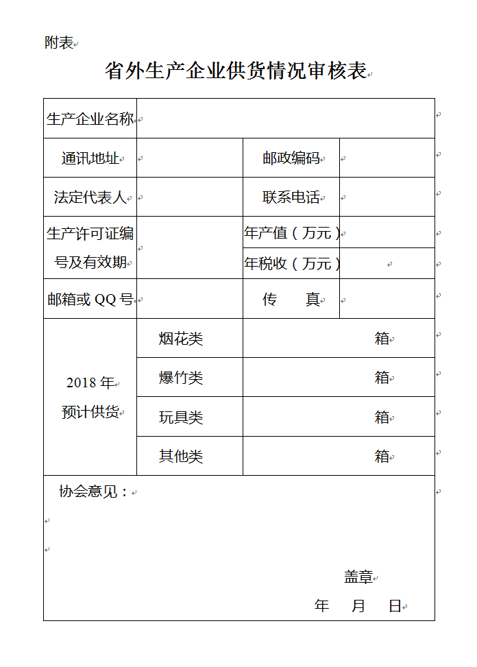 附表:《省外生產(chǎn)企業(yè)供貨情況審核表》