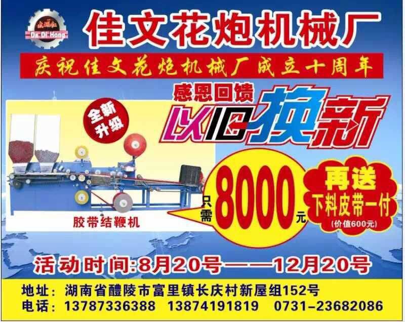 你現(xiàn)在的位置主 頁(yè) >> 產(chǎn)品名錄 >> 花炮機(jī)械 >> 結(jié)編封裝機(jī) >>