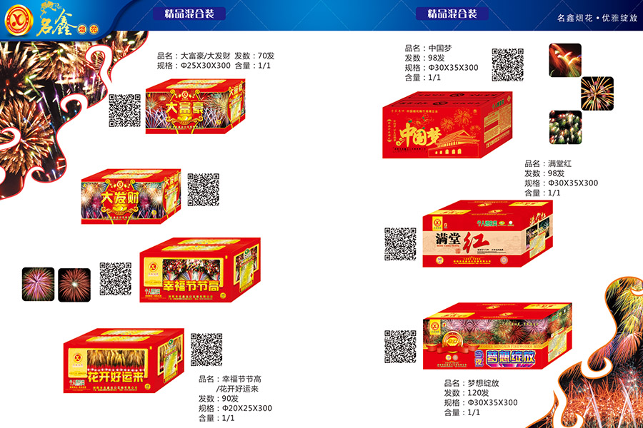 瀏陽(yáng)市名鑫出口花炮有限公司創(chuàng)于1996年,前身為瀏陽(yáng)市長(zhǎng)發(fā)花炮廠。2011年,公司在瀏陽(yáng)市永和鎮(zhèn)整體搬遷重建,于2014年投產(chǎn)。公司占地面積1200余畝,廠房232棟,建筑面積25000平方米,投資總計(jì)3800余萬(wàn)元,擁有組合煙花類(lèi)、鞭炮類(lèi)、吐珠類(lèi)、噴花類(lèi)四條生產(chǎn)線,設(shè)計(jì)年產(chǎn)值2億元,旗下在內(nèi)蒙古擁有五家具備自主經(jīng)營(yíng)權(quán)的直營(yíng)批發(fā)企業(yè),是一家集煙花研發(fā)、生產(chǎn)、銷(xiāo)售于一體的大型煙花爆竹標(biāo)準(zhǔn)化生產(chǎn)出口企業(yè)。 公司擁有煙火藥自動(dòng)混合機(jī)、筑藥機(jī)、組盆機(jī)、內(nèi)外筒加工機(jī)、結(jié)鞭機(jī)等生產(chǎn)機(jī)械40多臺(tái)套,配套10000平方米的標(biāo)準(zhǔn)化倉(cāng)庫(kù),生產(chǎn)自動(dòng)化程度高,安全系數(shù)高、產(chǎn)能穩(wěn)定。同時(shí),公司特別保留了極小部分從業(yè)十多年的老工人手工生產(chǎn)程序,一展花炮生產(chǎn)的千年文化和獨(dú)特魅力; 公司管理團(tuán)隊(duì)專(zhuān)業(yè),技術(shù)力量雄厚,是全球花炮生產(chǎn)基地最標(biāo)準(zhǔn)、最規(guī)范的花炮企業(yè)之一。公司通過(guò)了嚴(yán)格的ISO9001國(guó)際質(zhì)量管理體系認(rèn)證,是煙花爆竹安全生產(chǎn)標(biāo)準(zhǔn)化二級(jí)示范企業(yè)。公司先后被評(píng)為“中國(guó)花炮十佳企業(yè)”、“花炮品牌文化建設(shè)示范單位”、“品牌中國(guó)花炮文化專(zhuān)業(yè)委員會(huì)副會(huì)長(zhǎng)單位”、“企業(yè)文化建設(shè)示范單位”、“支持公益事業(yè)先進(jìn)單位”。國(guó)家安全生產(chǎn)監(jiān)督管理總局以及湖南省、瀏陽(yáng)市安監(jiān)局多次組織安全生產(chǎn)相關(guān)人員到公司參觀、調(diào)研,公司被列為“瀏陽(yáng)市煙花爆竹燃爆事故應(yīng)急救援演練示范基地”。國(guó)家安監(jiān)總局領(lǐng)導(dǎo)、公安部消防局領(lǐng)導(dǎo)、湖南省副省長(zhǎng)張碩輔、長(zhǎng)沙市委常委、瀏陽(yáng)市委書(shū)記曹立軍等各級(jí)領(lǐng)導(dǎo)相繼到公司考察、指導(dǎo)、調(diào)研,并充分認(rèn)可和高度贊揚(yáng)公司發(fā)展。 名鑫煙花以“誠(chéng)信、安全、卓越、創(chuàng)新”為文化核心,以“做一流產(chǎn)品,樹(shù)名鑫品牌,創(chuàng)明星企業(yè)”為戰(zhàn)略規(guī)劃; 以“誠(chéng)信經(jīng)營(yíng)、品行如一、細(xì)致服務(wù)、互利雙贏”為價(jià)值中樞。我們將站在行業(yè)的高度,與致力于煙花行業(yè)健康發(fā)展花炮人一起,推動(dòng)花炮的安全化、環(huán);、科技化和文化化,向世人展示獨(dú)具東方魅力的千年花炮傳統(tǒng)文化。