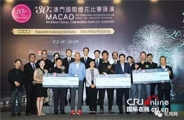 第30屆澳門國(guó)際煙花比賽匯演頒獎(jiǎng)典禮。澳門新聞局供圖