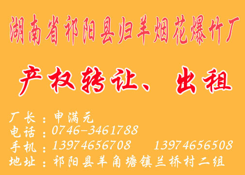 湖南省祁陽(yáng)縣歸羊煙花爆竹廠[ 企業(yè)名片 /E-mail ]